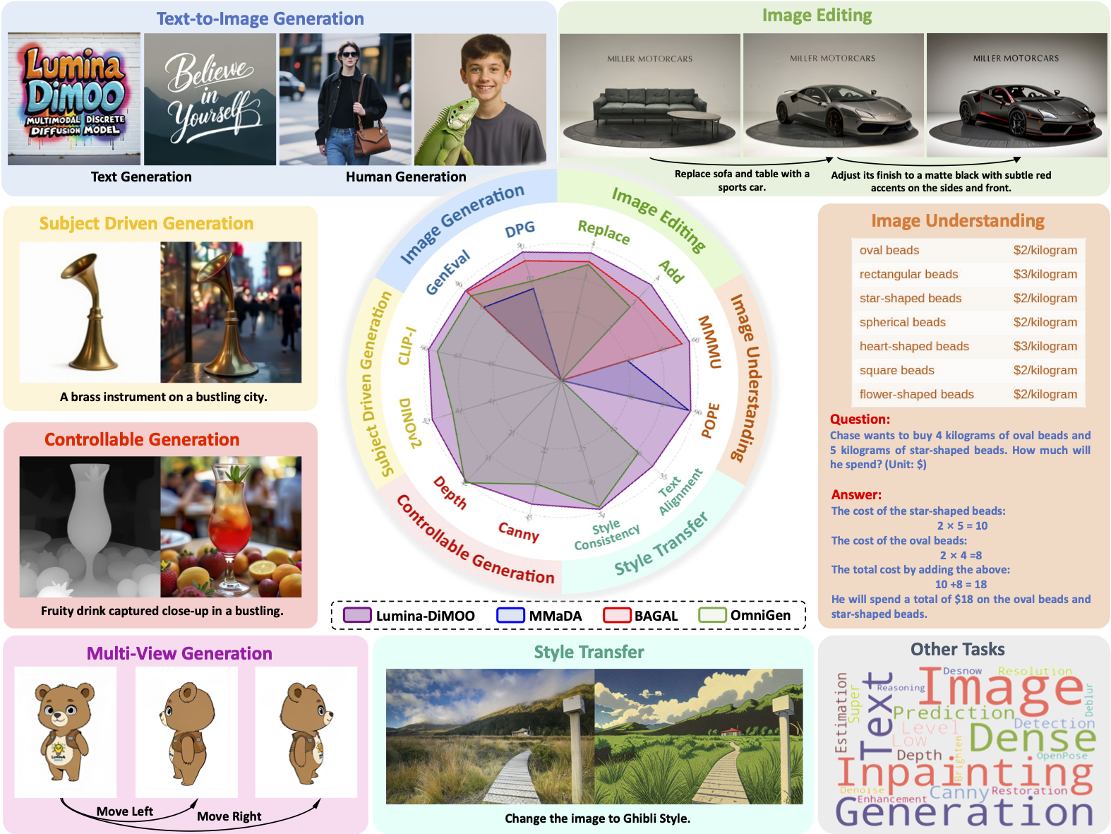 An open-source foundational model with fully discrete diffusion modeling for seamless multi-modal generation and understanding.